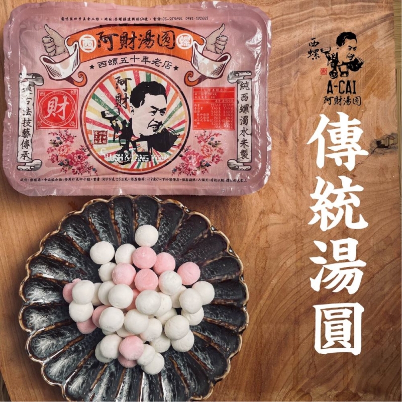 傳統米湯圓文案~憨厚純樸的阿財堅持在地特色, 50 年以來不計成本和人力堅持使用西螺濁水米製作傳統米湯圓, 濁水米經 3 小時浸泡後研磨米漿, 再經快速脫水後攪拌成糰, 從碾磨米漿到湯圓的製成, 費時又費工的傳統手藝, 就是為了呈現最自然純樸的家鄉味和濁水米的香甜。