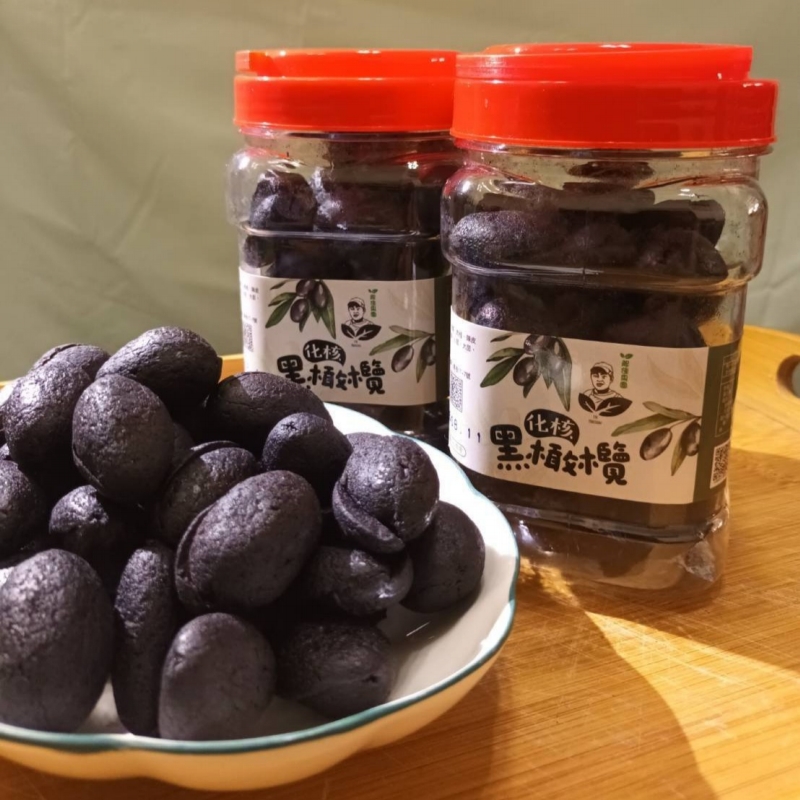 化核黑橄欖 重量:440g/罐 成分:橄欖、糖、鹽、甘草、肉桂、陳皮、丁香、花椒、八角、小茴、大茴、百草粉