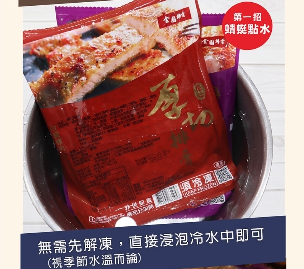 不需要事先解凍喔 ! 可直接將真空包放入冷水中約5分鐘即可