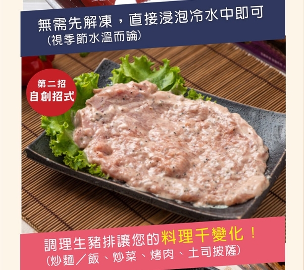 ◆加熱調理方式:解凍後須充分煎熟/炸熟(依自己熟悉的料理方式)
