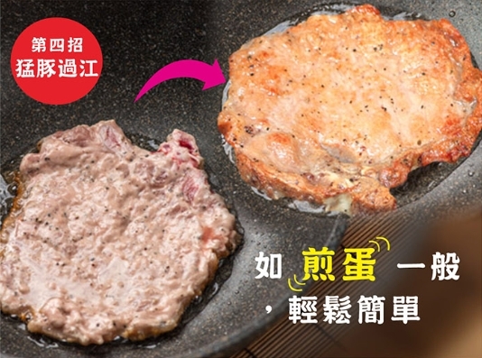 嚴選上等里肌肉,每一片皆以手工抓捏、拍打,反覆浸潤醬料中,藉由手溫讓豬排吸收醬汁,再以真空按摩機SPA肉品約莫50分鐘,使肉質更為柔嫩鮮美。