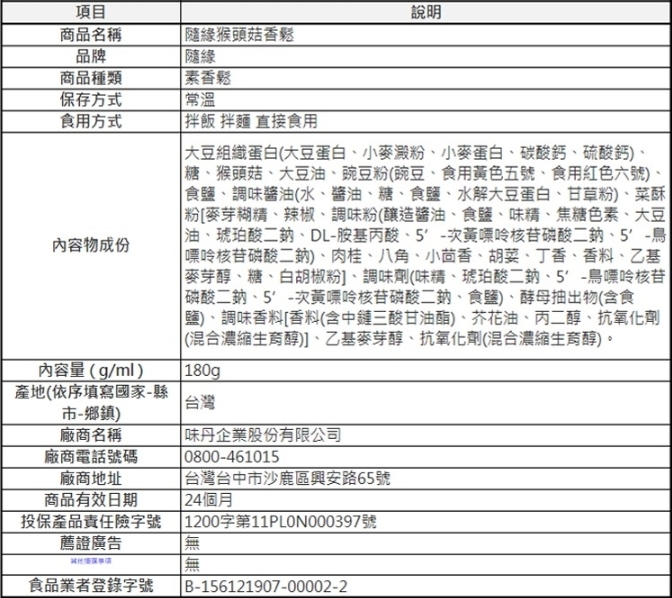 ◆選用極具營養價值的新鮮猴頭菇經高溫慢火焙炒製成,保留食材原香及口感,在咀嚼同時唇齒留香