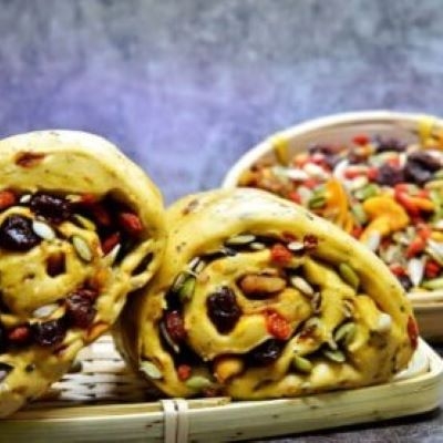 採用老麵發酵製作,口感Q彈紮實,加入多種雜糧與堅果,穀香濃郁、層次豐富。蒸熱即可享用,健康飽足不負擔,適合早餐或下午茶。