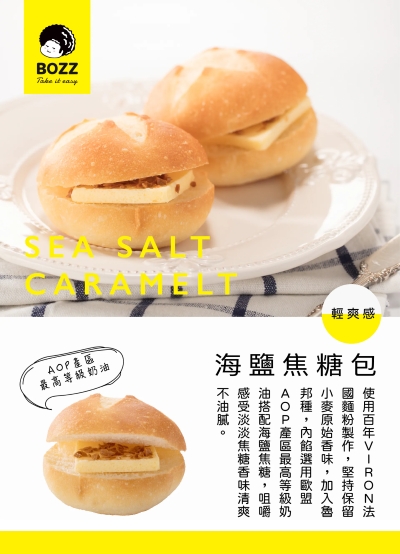 ▶成分:法國麵粉、奶油、砂糖、奶粉、黃豆泥、岩鹽、酵母、海鹽焦糖