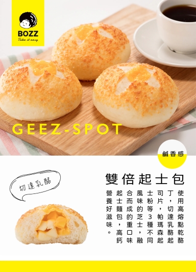 ▶成分:法國麵粉、奶油、砂糖、黃豆泥、岩鹽、酵母、乾酪丁、乳酪片、帕瑪森乾酪粉