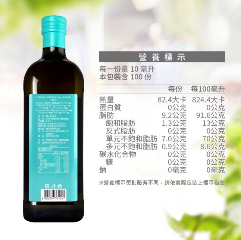 ✔ 100% 特級初榨橄欖油(第一道冷壓)